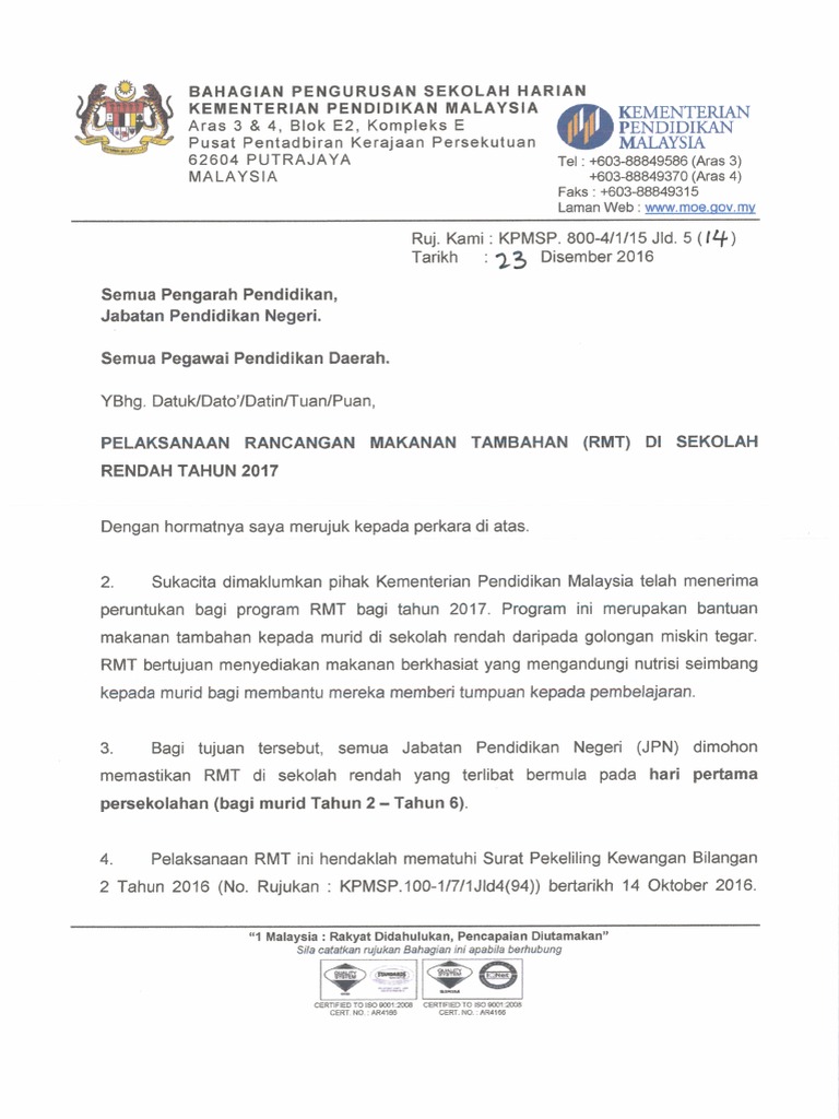 Borang Permohonan Rmt 2017 / Lampiran 1 permohonan baru sambung semula borang permohonan tahun 2018 bantuan rancangan makanan tambahan (rmt) kementerian pelajaran malaysia (i) permohonan ini akan dibatalkan sekiranya butiran yang diberikan tidak lengkap atau tidak benar.. Kemasukan ke pusat latihan perindustrian & pemulihan bangi.full description. December 18, 2017 informasi, permohonan. Savesave borang permohonan rmt 2017.docx for later. Markah laporan nilaian prestasi tahunan (lnpt) tahun 2017 2018 2019. Untuk jawatan kosong aadk ini, anda perlu download borang dan hantarkan resume kepada majikan di kementerian tersebut.